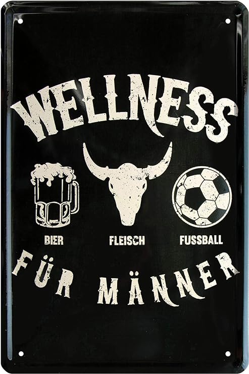 Wellness Fur Manner Bier Fleisch Fussball 20x30 Cm Deko Blechschild 246 Amazon De Kuche Haushalt