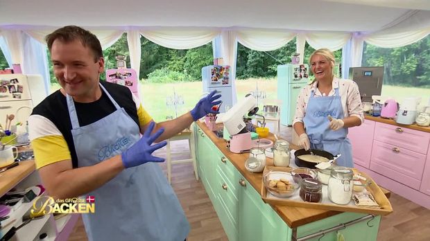Das große Backen - Die Profis Team Rot. Cosima und Martin machten ihre Leidenschaft zum Beruf. Auf die Plätze fertig jetzt wird gebacken.
