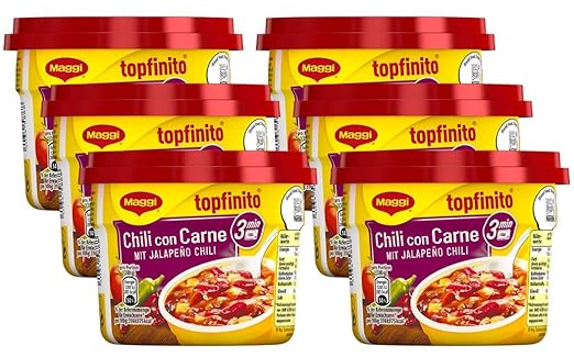 Maggi Topfinito Chili Con Carne Mit Jalapeno Chili Leckeres Fertiggericht Mit Hackfleisch Und Kidneybohnen In Wurziger Sosse 6er Pack 6 X 380g Amazon De Lebensmittel Getranke