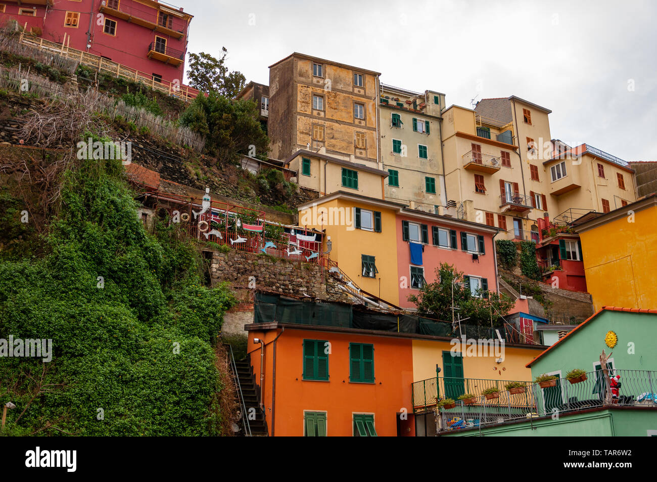 Manarola In Der Cinque Terre Italien Wunderschone Stadt Am Meer Und Fischer Ein Beliebtes Reiseziel Fur Urlaub Am Meer Und Verfolgung Stockfotografie Alamy