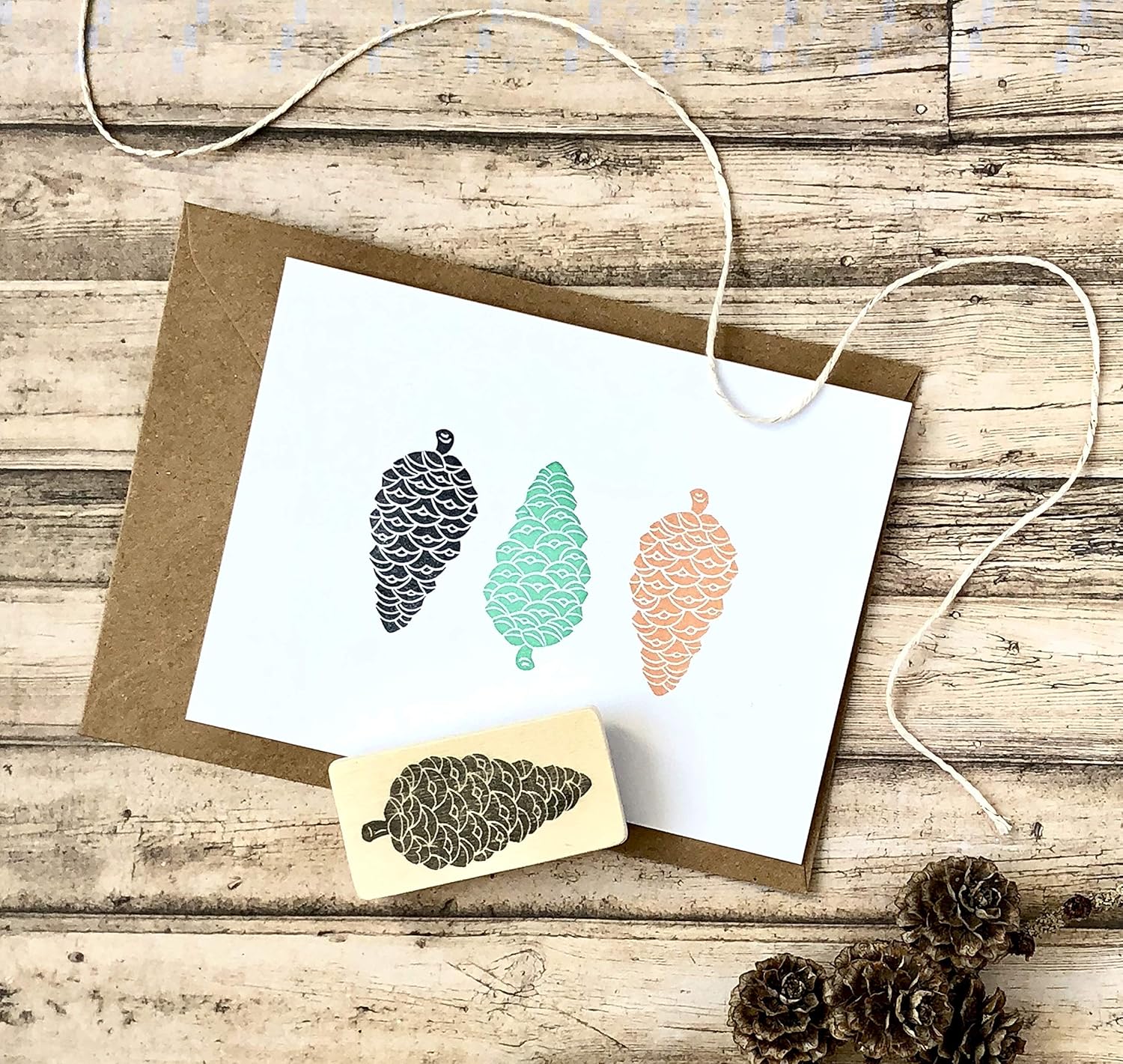 Diy Geschenk Winter Schulstempel Nadelbaum Zapfen Handgeschnitzt Holzstempel Weihnachts Deko Motivstempel Kiefernzapfen Auf Holz Montiert Zapfen